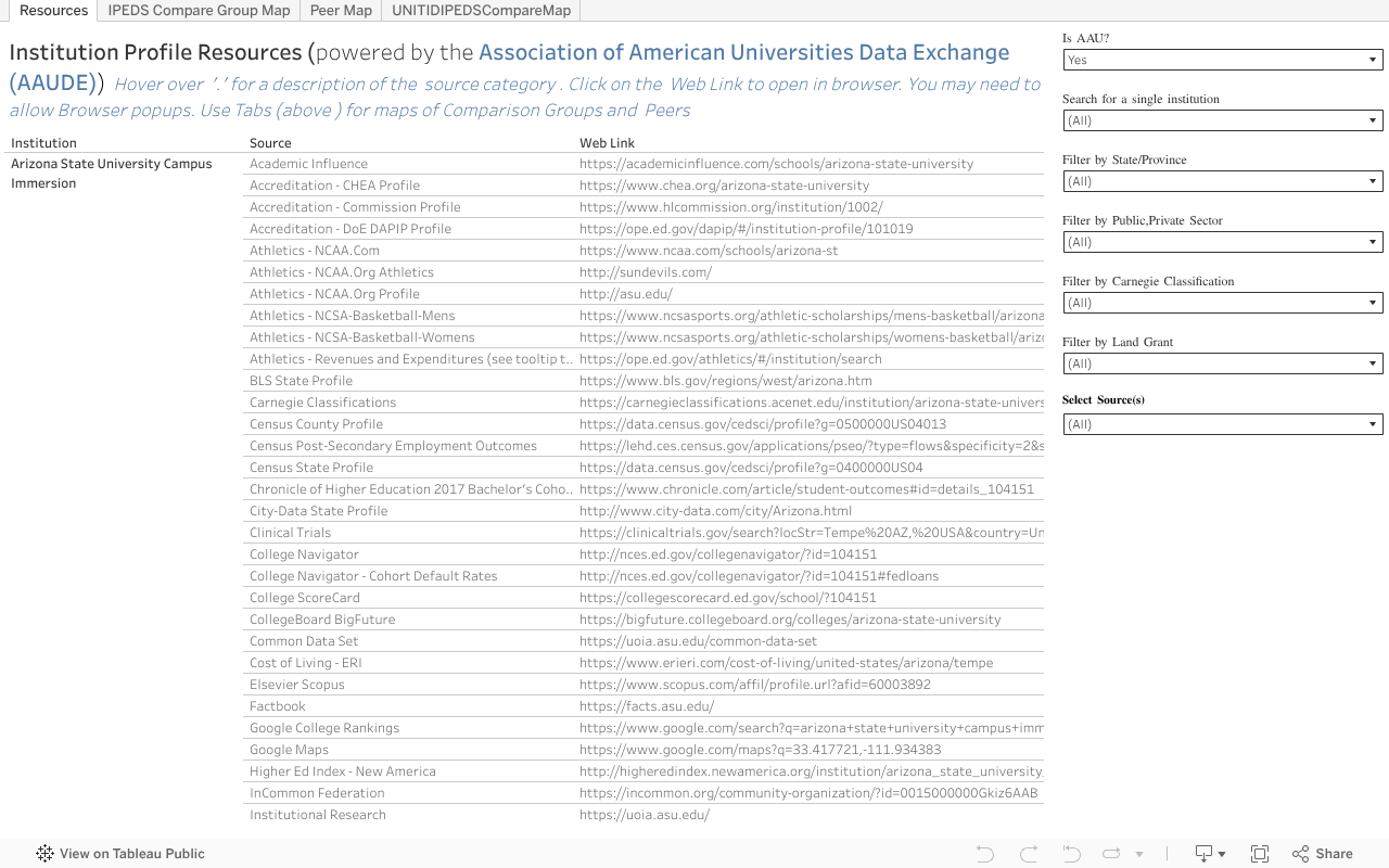 There is a lot of data out there if you just know where to look, how to harvest it and how to structure it into a larger data ecosystem. In addition to producing analyses, most of these sources also maintain institution profiles available through their web sites. These institution profile web pages have patterns to how their URLs are constructed. As example, NSF institution profiles URLs address by FICE, Scorecard URLs address by IPEDS UNITID, NIH URLs address by their internal OrgID and Collegeboard URLs address by the institution name where the spaces are replaced with hyphens. If you know the URL pattern you can code a hack to address all the institution profile pages for any given site and build a library of resources with little actual searching or harvesting. Such a resource library can then be used to crawl those sites for any data they might contain. All URLs are clickable.